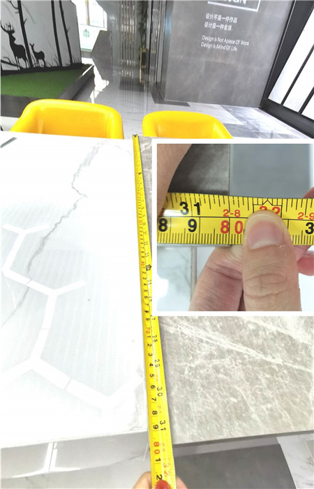 測(cè)評(píng)人員對(duì)億方厚道通體大理石歐米茄灰(PC712)進(jìn)行規(guī)格測(cè)試,由現(xiàn)場(chǎng)測(cè)出所得結(jié)果長(zhǎng)寬為800×800mm的精準(zhǔn)規(guī)格,其厚度為13.5mm。與企業(yè)給出的數(shù)據(jù)相符合。其工藝相當(dāng)縝密,尺寸把控出色,言之一款合格的瓷磚要達(dá)到“0”偏差,才能使鋪貼過(guò)程中不會(huì)出現(xiàn)凹凸、縫隙大小不一等現(xiàn)象。