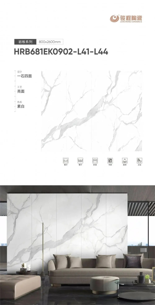 800X2600MM大規格,磚面效果豐富,承載更多圖案,6MM厚度,既薄且輕又堅固,便于切割和加工,櫥柜、地面、墻面、背景墻、衛浴、家具、衣柜等靈活應用,實用性強。