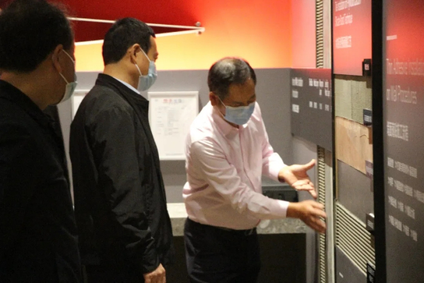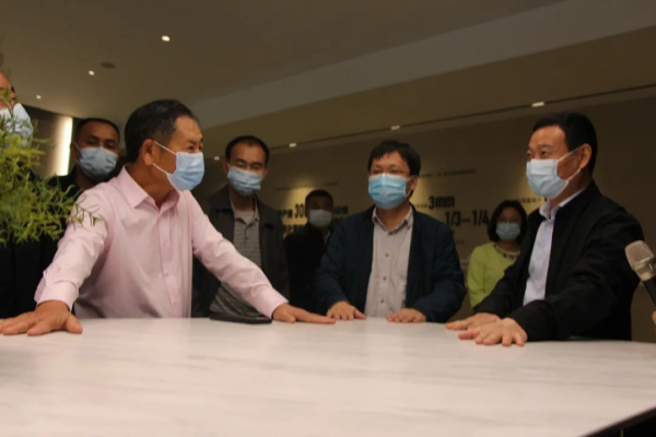 調研組首先參觀了新明珠當代陶瓷研究院,聽取了葉董事長對生產原材料儲備、陶瓷生產工藝流程和瓷磚性能等情況介紹,詳細了解了大板(巖板)瓷磚、石墨烯地暖瓷磚和石墨烯智控發熱巖板桌等新明珠自主研發生產的前沿產品。