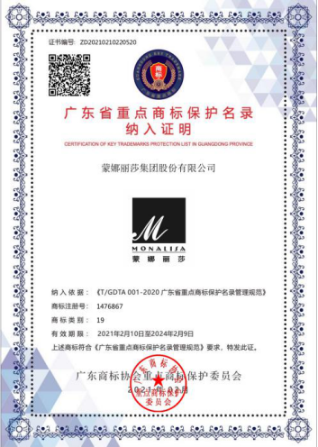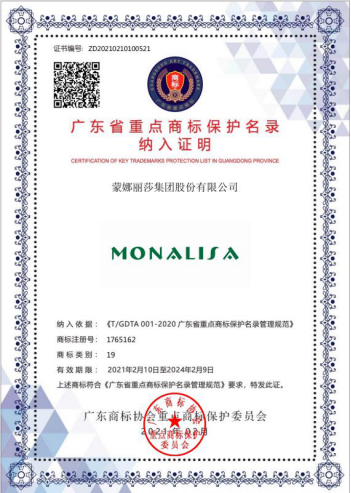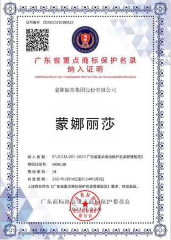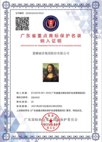 蒙娜麗莎商標入選廣東省重點商標保護名錄,是榮耀也是動力,蒙娜麗莎將駛入新征程!