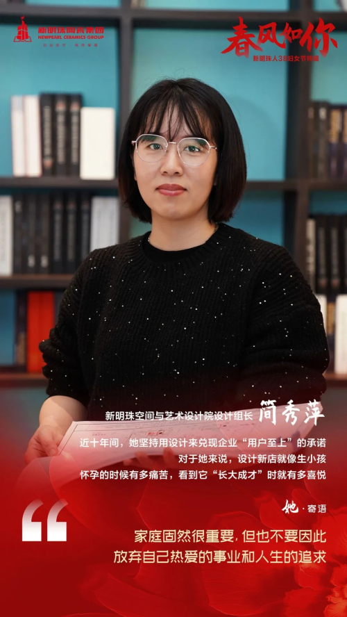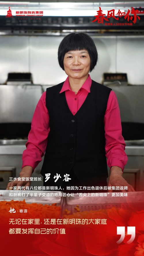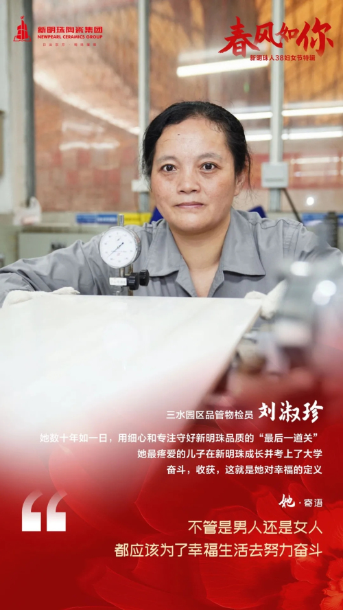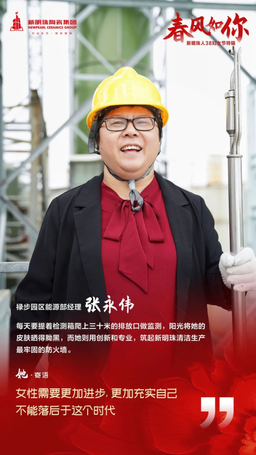 作為制造業的一員,“女性能頂半邊天“一直都是我們陶瓷行業發展歷程之中最為真實的寫照,特別是在新明珠,女性員工在各個崗位之上都發揮著至關重要的作用。她們中有的讓高品質的新明珠產品走進了千家萬戶;有的成為新明珠數據化、信息化轉型之路上的攀登者;有的為企業筑起綠色環保的護城河,有的緊守著新明珠品質的最后一道關卡……