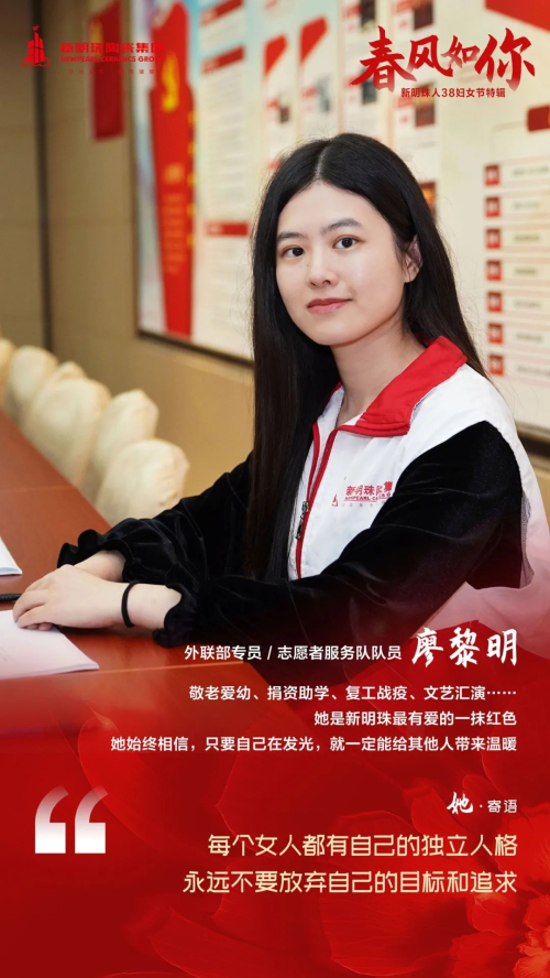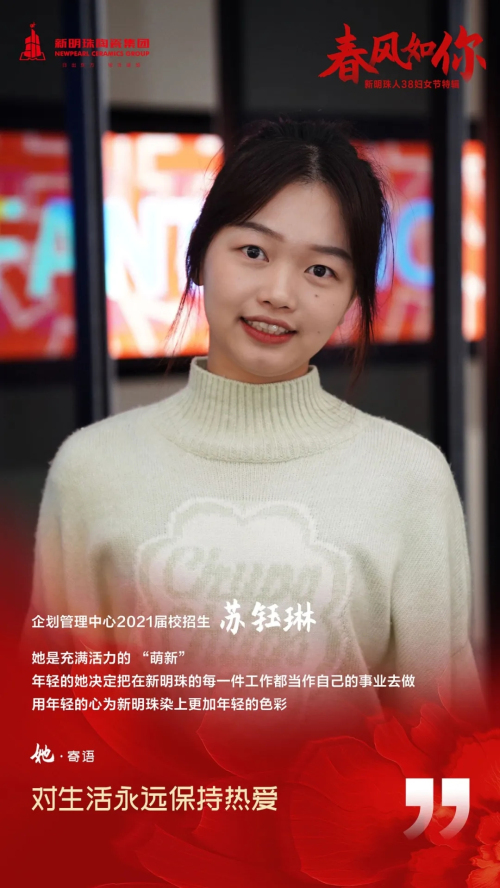 今天是“3.8國際勞動婦女節”,在這個特別的日子里,我們開展了 “春風如你·致敬明珠巾幗”活動,和10位不同年齡和崗位的新明珠女性員工聊了聊工作、家庭和人生。