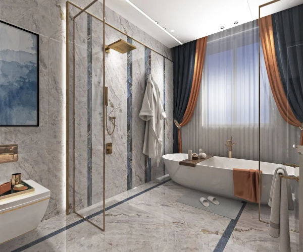 這也是設(shè)計師推薦K4系列中4-JAG61262(多瑙河之夜)的重要原因。大面積鋪貼,極具層次感的紋理,提升空間檔次,營造私密浪漫的氛圍。