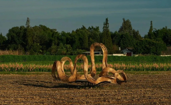 ▲《影》的原材料是麥稈,黝黑、暗黃的色澤與炸裂的形態。