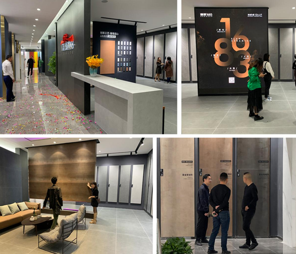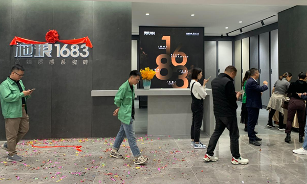 新展廳1683匠心工藝館的設計以質感優雅風格為主,產品工藝豐富,光感柔和舒適,格調滿滿,不僅有視覺上的享受,更是能讓人通過手的觸碰來感受不同產品工藝的細膩質感;新展廳開業的第一天即迎來不少客戶蒞臨參觀,大家對這種質感工藝的產品風格贊不絕口,不少人更是慕名前來尋找特殊工藝面的產品。