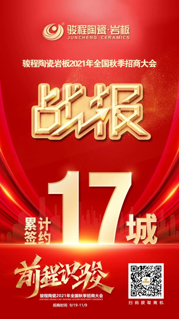 11月9日晚19:30,“前程識駿”駿程陶瓷2021年全國秋季線上招商會如約而至。這是駿程首次通過微信社群的形式,讓客戶只需在家手機觀看,便可以線上繳納定金進行加盟合作,在當下疫情期間打破地域局限,為廣大意向加盟商提供了一鍵獲取財富商機的機遇。兩個小時的線上精簡講解,干貨滿滿,精彩不斷,吸引全國各地的意向加盟商齊聚線上,最終簽下17城!宣告著此次線上招商大會圓滿收官!