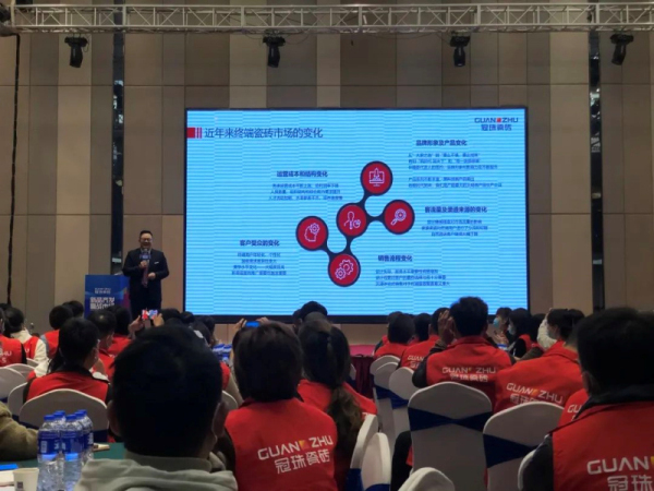 會議上,來自冠珠品牌的劉映紅老師、趙煦溶老師、潘求賢老師、陳志榮老師分別圍繞《常見售后問題預防》、《售后服務技巧培訓》、《高值產品銷售五個一系統》、《巖板產品知識及工藝分享》及《華脈系列產品推介》主題進行干貨分享,讓全體經銷商統一思想,形成標準化推進新品推廣工作,為終端銷售力與服務力的提升提供了系統解決思路,助推終端持續打造提升產品和服務質量,擴大產品市場占有率,促進終端銷售增長。