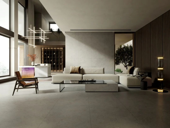 通常來說,紋理越輕越簡潔,給空間的留白越多,就越不容易出錯。尤其是大面積鋪貼的墻地面,簡約款式能讓空間更舒展大氣,家具的擺放也能更加隨性。