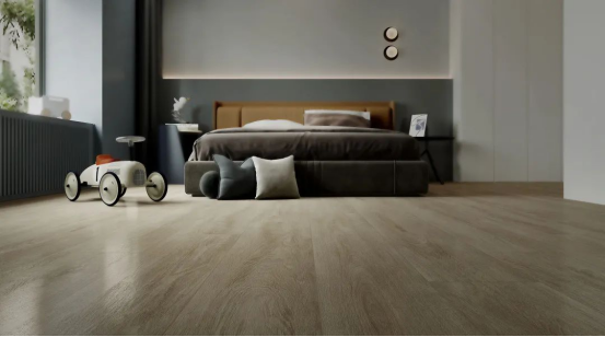 箭牌復合輕紋磚木紋磚的原生質感,搭配高級灰墻面,兩者結合形成淡雅沉穩的空間底色,靜謐舒適的同時也讓臥室層次更明朗,使得睡眠空間更加地深邃放松。