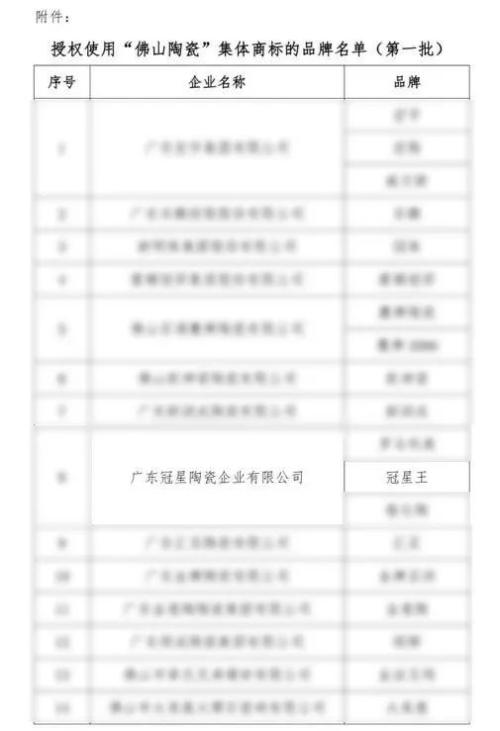 △冠星王上榜首批“佛山陶瓷”集體商標授權(quán)品牌