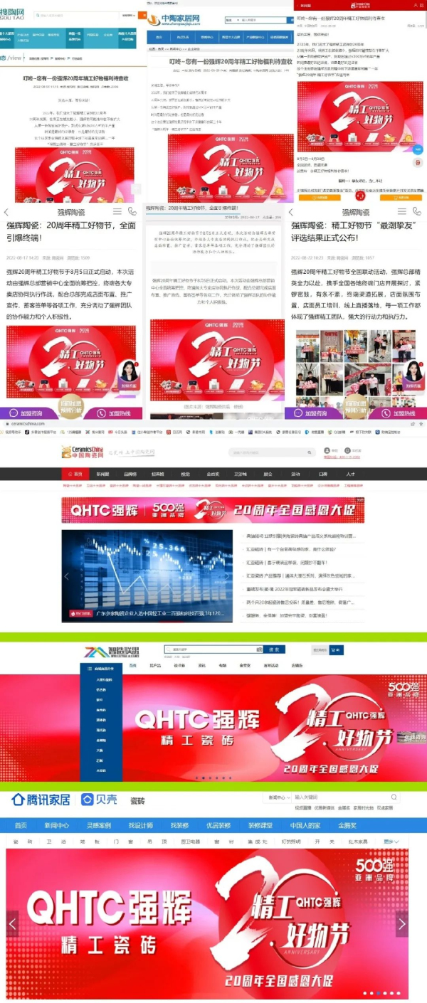 強輝精工好物節受到行業內媒體熱烈關注,獲得數十家主流媒體追蹤報道,各大媒體平臺花式為強輝20周年打CALL,以“強輝20周年·精工好物節”為主題的熱點新聞霸占了行業內外各大媒體的版位和頭條。