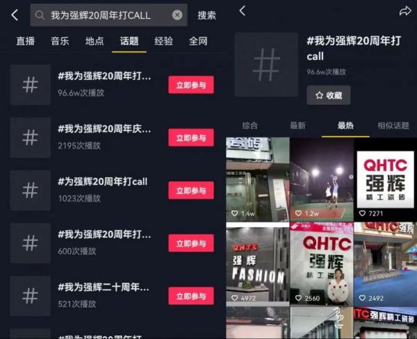 活動自開始以來,強輝品牌總部發起了20周年抖音挑戰賽,截止發稿前統計,話題播放量近100w+;線上三場落地直播花式抽獎回饋摯友,多重驚喜豪禮抽送不停,直播間刷屏式互動狂歡不斷。